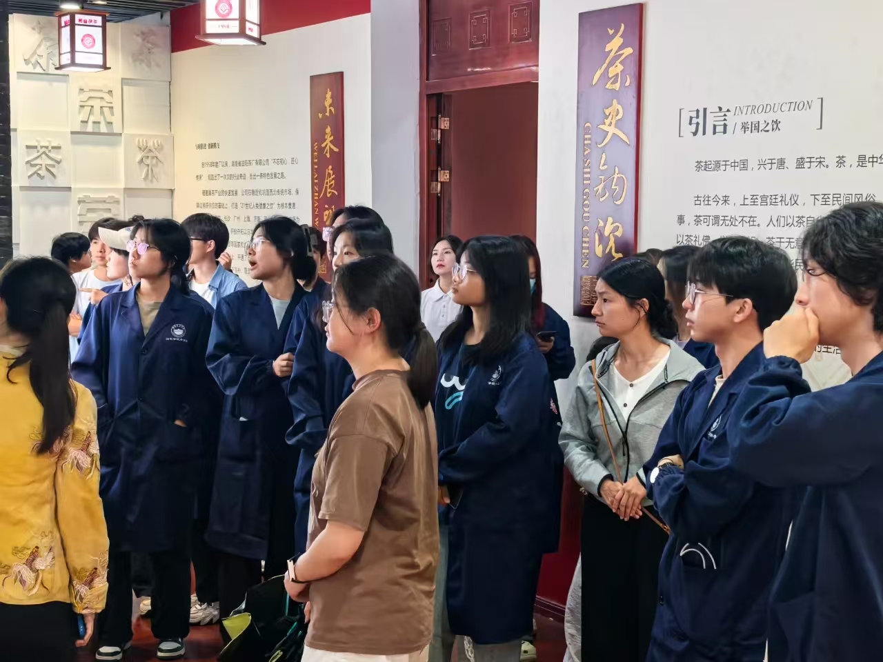 師生們首先實(shí)地參觀了湘益生產(chǎn)線與茶博館。在生產(chǎn)車間,同學(xué)們親身感受益陽(yáng)茶廠標(biāo)準(zhǔn)化、現(xiàn)代化的生產(chǎn)流程,對(duì)茯磚茶的制作工藝有了初步直觀的了解。茶博館內(nèi)陳列的一件件展品,則如同一部生動(dòng)的茶文化史書,讓師生們沉浸式領(lǐng)略益陽(yáng)茶廠深厚的文化底蘊(yùn),探尋茯茶的前世今生,深刻體會(huì) “一片茶葉承載的使命”。