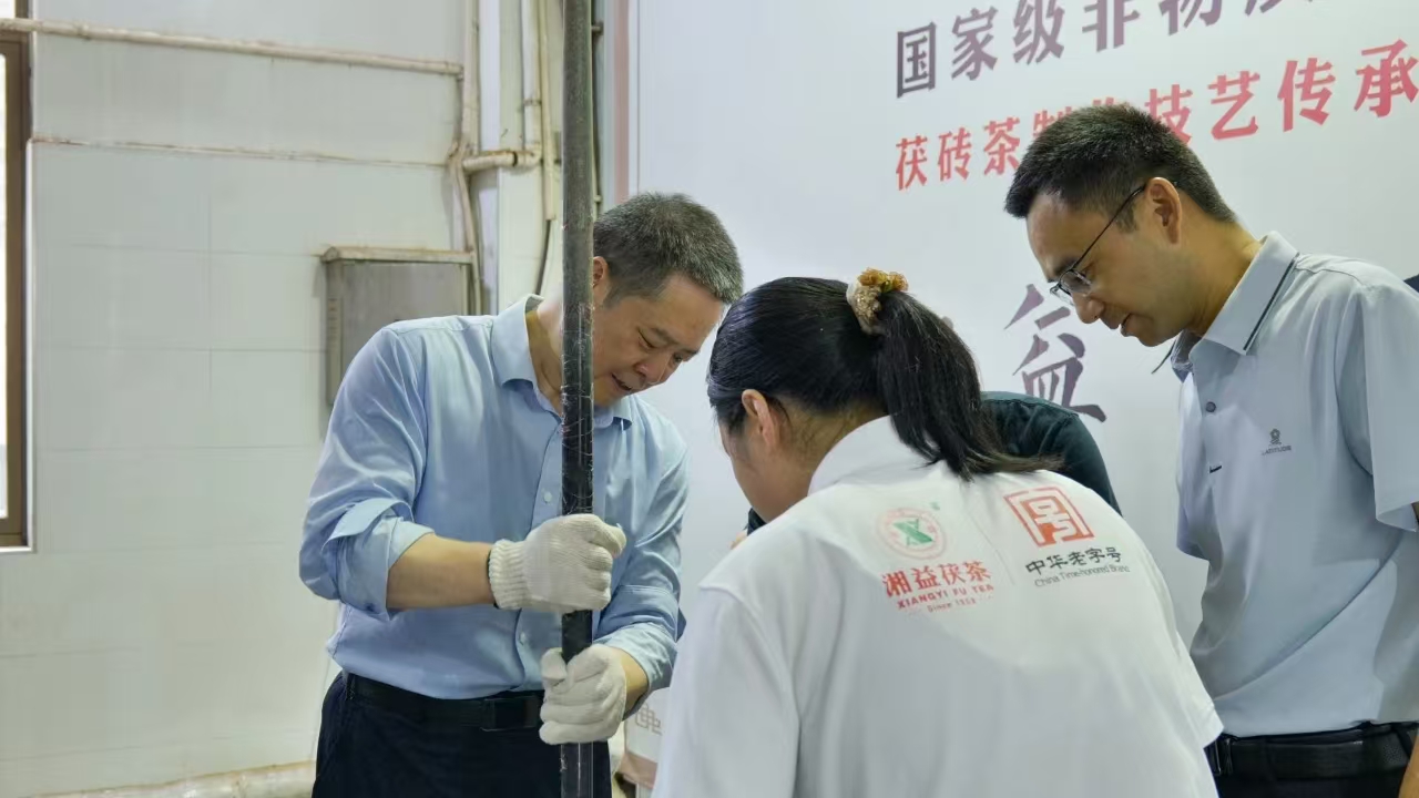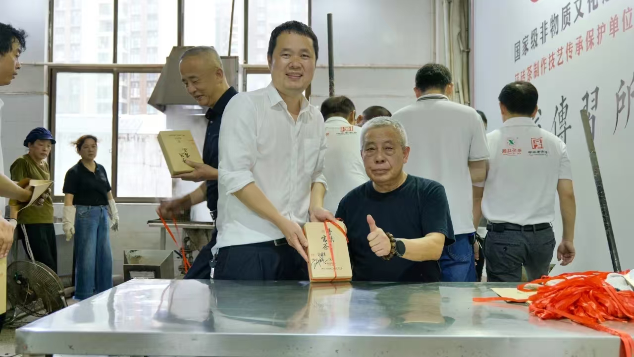 5 月 20 日,益陽(yáng)市茶葉學(xué)會(huì)組織的2025年茶葉精深加工體驗(yàn)系列活動(dòng)在益陽(yáng)茶廠有限公司隆重舉行,本次活動(dòng)以“非遺傳承?手筑茯香” 為主題。作為國(guó)家級(jí)非遺茯磚茶制作技藝唯一傳承保護(hù)單位,益陽(yáng)茶廠以沉浸式非遺體驗(yàn)為核心,特邀國(guó)家級(jí)非遺傳承人劉杏益大師全程指導(dǎo),吸引了眾多愛(ài)茶人士深度參與。公司董事長(zhǎng)彭雄根、總經(jīng)理余智勇、黨委書(shū)記兼常務(wù)副總經(jīng)理徐迪軍、副總經(jīng)理郝建等領(lǐng)導(dǎo)出席活動(dòng),與來(lái)賓共襄非遺文化傳承盛舉。