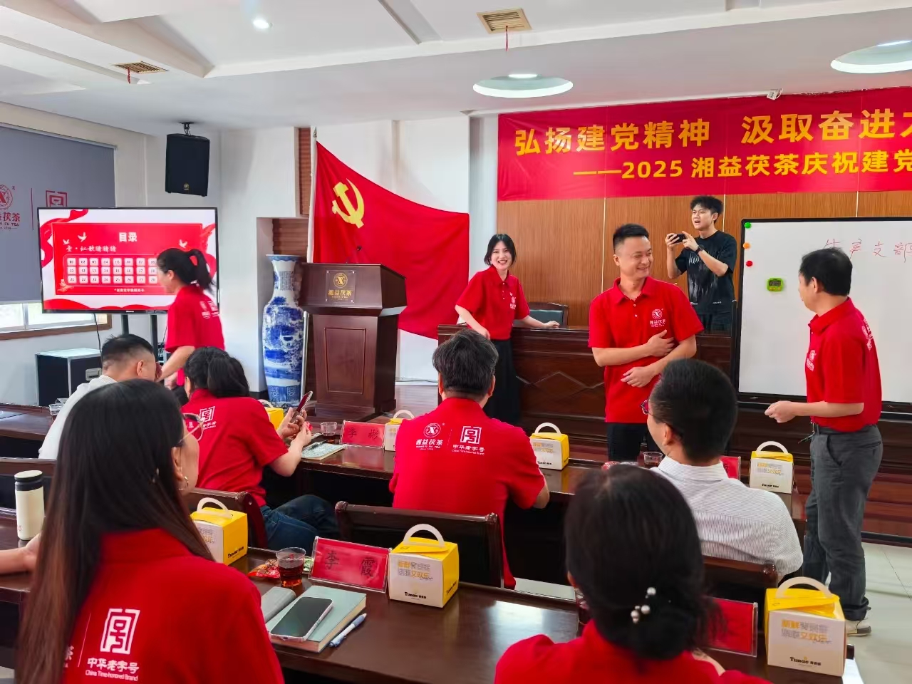 7月1日,在黨的104周年華誕這個特殊的日子里,湘益茯茶全體黨員精神抖擻地齊聚公司6樓會議室。在生產(chǎn)支部書記安茂強的帶領(lǐng)下,全體黨員高舉右拳,面向鮮紅的黨旗莊嚴(yán)宣誓。鏗鏘有力的誓言在會場回蕩,仿佛穿越時空,喚醒了每位黨員入黨時的赤誠初心。這一刻,信仰的力量在胸中激蕩,奮斗的熱情在心中燃燒。